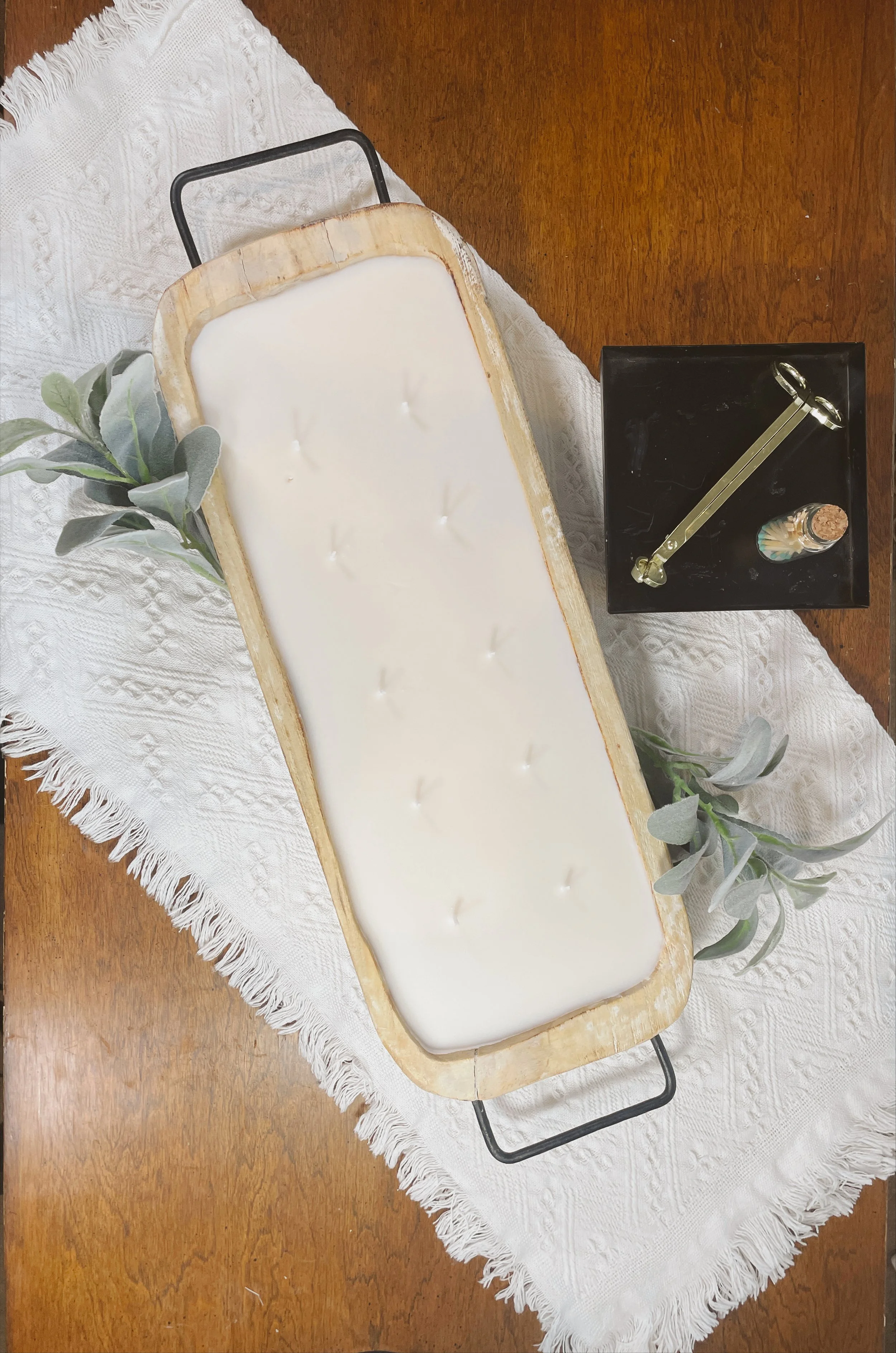 this large candle, in a rustic galvanized metal bowl, adorned with precious pastel succulents has a diameter of 10” and a height of 4”